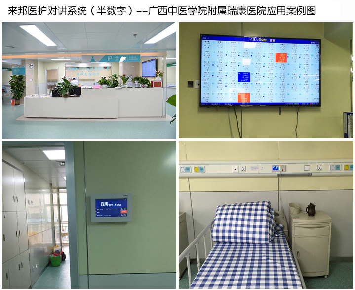 此次中標產品:來邦自主研發、設計、生產的醫護對講系統(半數字)產品,共計:1000張病床、320間病房、14個護士站管理,現已安裝完畢。