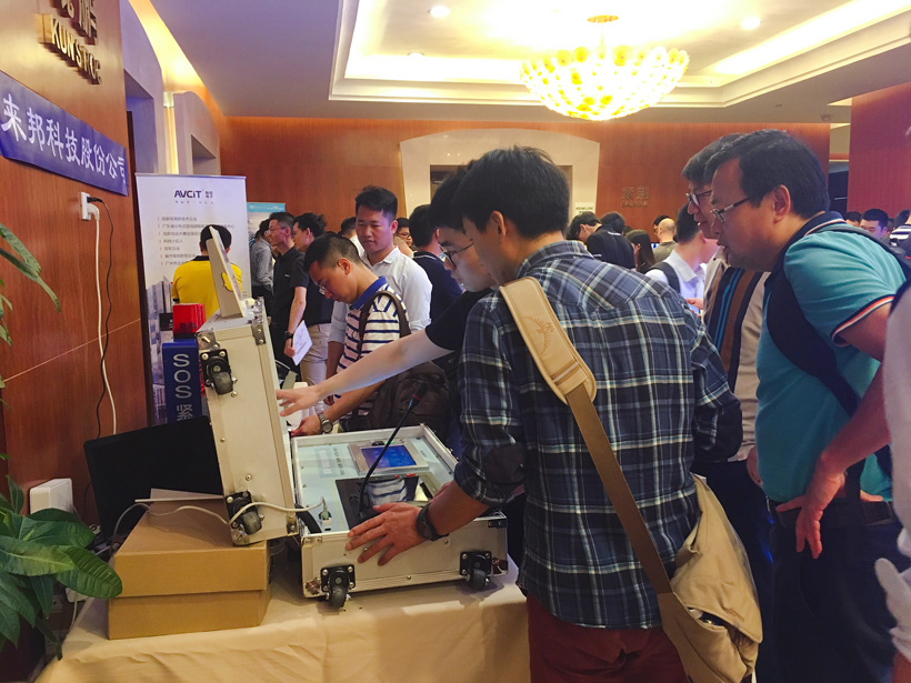 產品展示區域,來邦科技集中展示了以“雪亮工程指揮調度系統”為主的新產品,吸引了大批參會游客了解觀看。