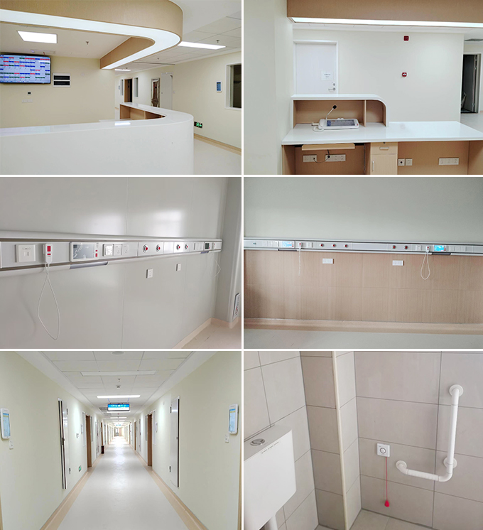 病房門口,具有信息交互顯示的門口機可清晰地顯示患者的基本診療信息、護理等級、責任醫(yī)生及責任護士。智能走廊屏,可直觀顯示呼叫患者的病房、床位號,指引護士第一時間前往處理。