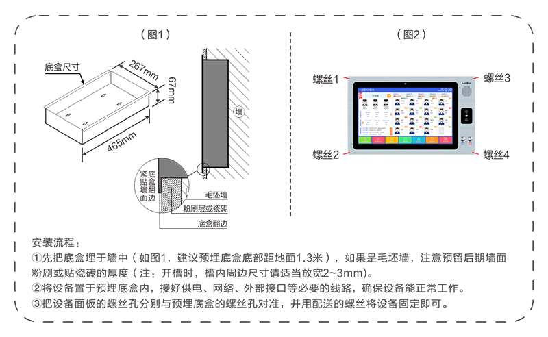 安裝鐵底盒預(yù)埋墻面安裝(開(kāi)孔)流程圖。