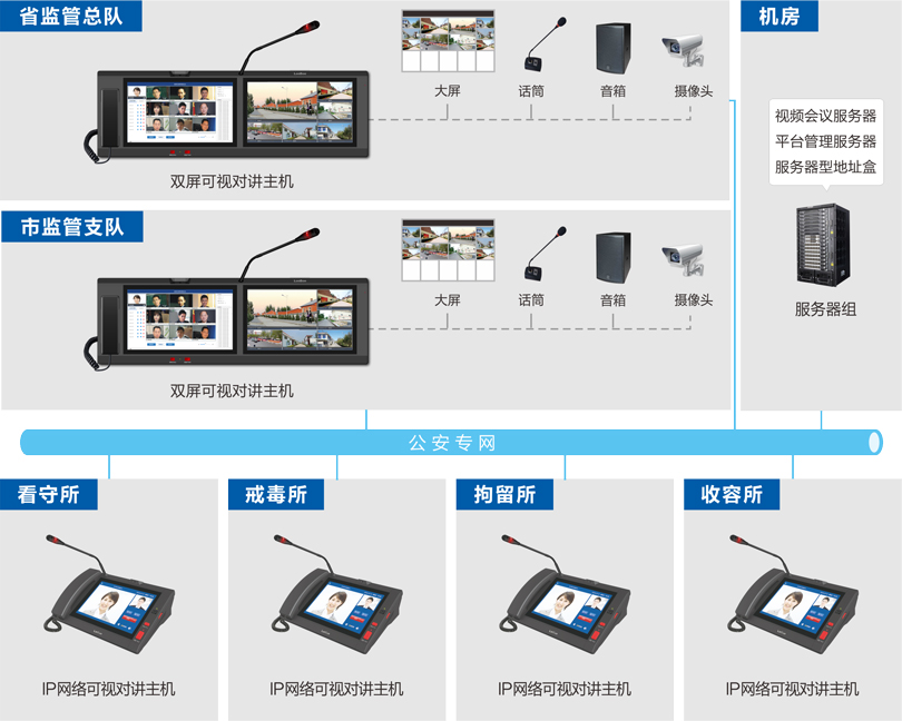 主機具有視頻會議功能,省監管總隊、市監管支隊、監所單位均可召開或參與視頻會議。