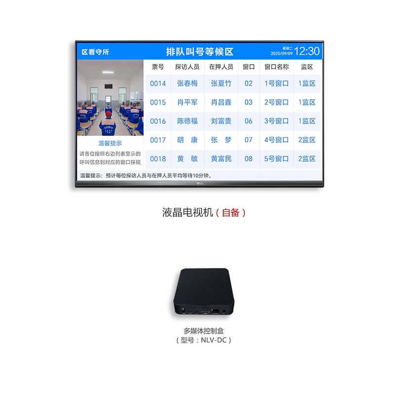 ? 控制盒通過HDMI方式連接液晶電視,安裝在家屬、在押人員會見區等場所。