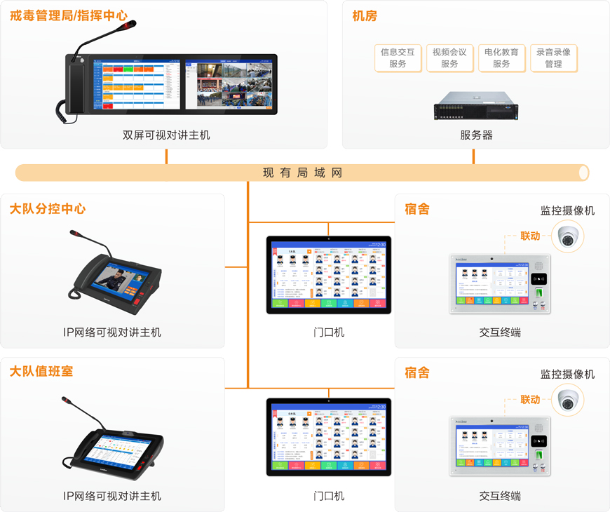 | 大隊監控室 | IP網絡可視對講主機 | NLV-30 | 臺 | 12 | 一般是監舍樓一層一個室 大隊監控 |