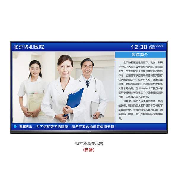、液晶電視機(jī)(自備)組成。壁掛式安裝在家屬等候區(qū)。