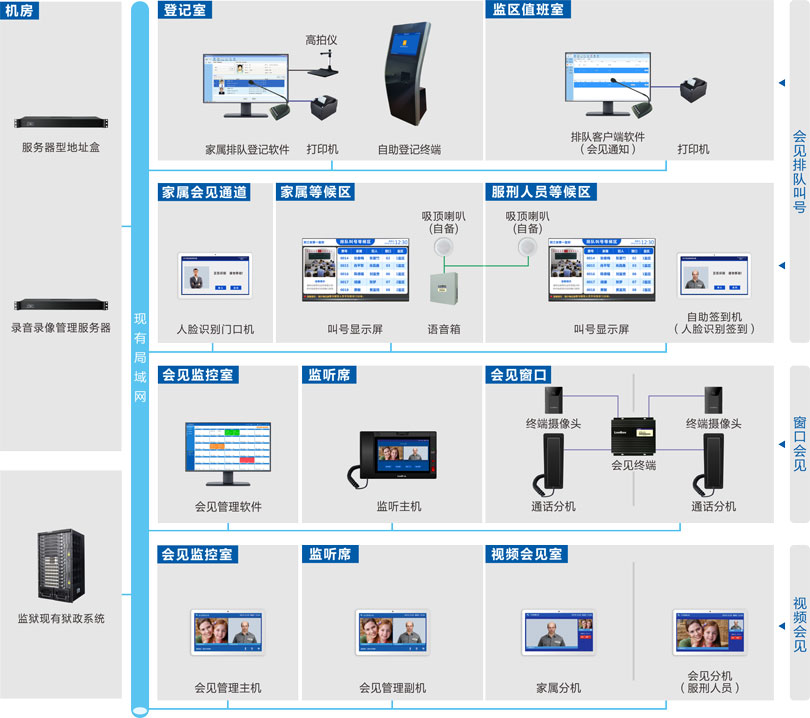 (會見預約、排隊叫號、會見管控、語音識別、獄務公開查詢)