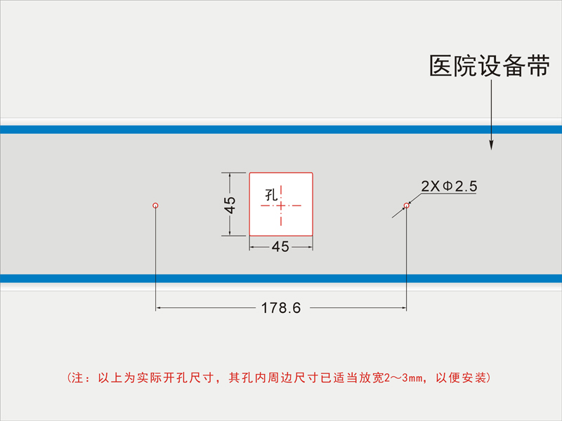 采用5英寸液晶顯示屏,超薄面板,標配普通手持,壁掛式安裝在醫院病床上方的設備帶上。