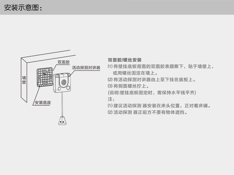 ? 支持雙向語(yǔ)音通話、拉繩報(bào)警、按鍵報(bào)警、喊話報(bào)警、居所內(nèi)無(wú)生命活動(dòng)報(bào)警等功能。