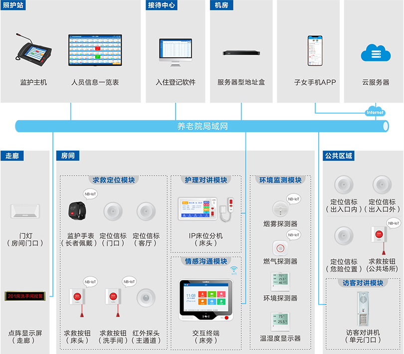 系統除具有求救定位、實時查找、體征監測、護理對講等基礎功能外,還基于大數據分析、云計算技術,實現長時間不動報警、洗手間滯留報警、洗手間跌倒報警、心率異常報警、呼吸異常報警等各類自動監護預警功能。